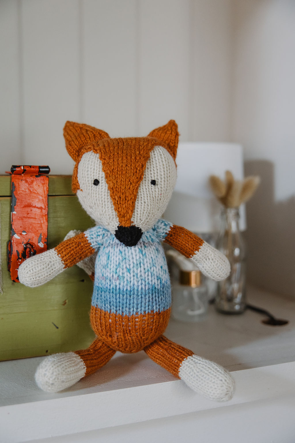• Hand knitted with a mix of acrylic and cotton yarns